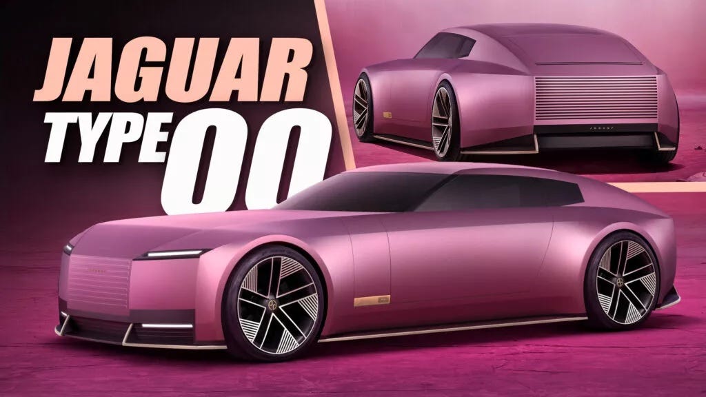 Painted in “Miami Pink” and “London Blue,” the Type 00 boasts exaggerated styling with a long hood, flowing roofline, and massive 23-inch alloy wheels. Jaguar says the design showcases the direction of its future electric lineup – daring, futuristic, and eye-catching.